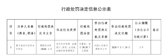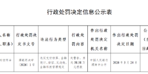 3月26日金融一线消息,中国人民银行渭南市分行行政处罚决