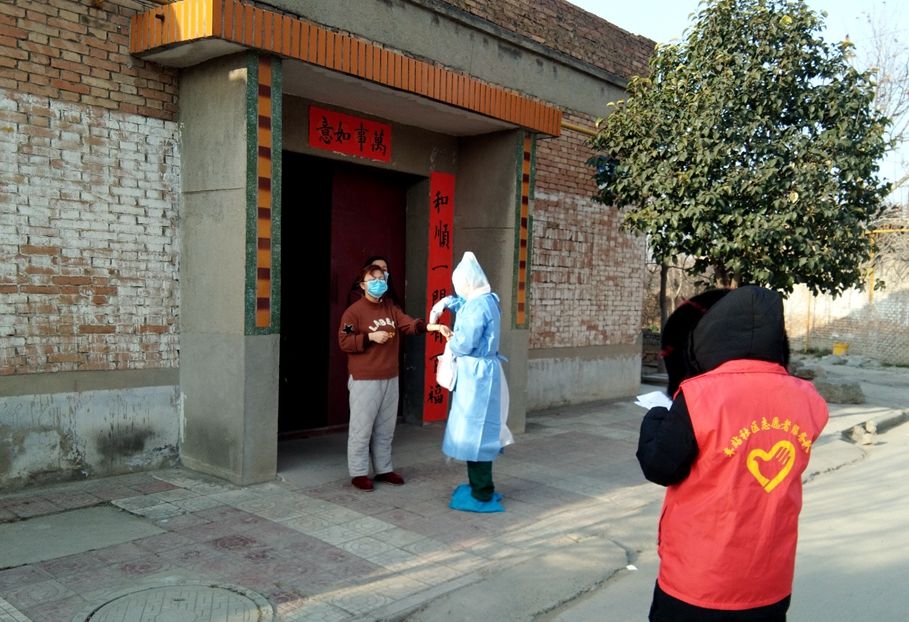 为进一步加大新型冠状病毒感染的肺炎的疑似病例搜索范围和力度,从源头上彻底切断病毒传播途径,城关街道迅速掀起为期24小时的全民体温检测大行动,打一场人民战,做到“拉网式筛查甄别全覆盖”,“保证不漏一户,不漏一人”。 白天:“全民测体温”大排查 2月18日12时,城关街道全民体温检测正式开始,由村(社区)包联领导、组织书记、村医(社区包联医生)、社区公卫包联人员、 机关干部、社区工作人员和志愿者组成的26个疫情排查工作队,深入各村、社区的居民小区和村(居)民集居区。三人一组、五人一队,挨家挨户开展全民测体温、大排查工作。在现场看到,每个工作队都安排了一名身着防护服的队员,负责为居民量体温、询问相关信息,其他的队员负责做好登记。 “您好,我是社区工作人员,请您配合我们做一下信息登记,谢谢!”当下午7点,在车站社区恒艺小区,车站社区书记李荣叩开了居民房门,“你们家里有几口人啊?麻烦大家依次过来量个体温。”包联医生、社区公卫人员虽然身着防护服,但他们依然自觉与居民保持了一定的距离。他还告诉大家,现在富平县人民医院专设发热门诊,有发热症状一定要及时就医,并尽快上报到社区进行登记。