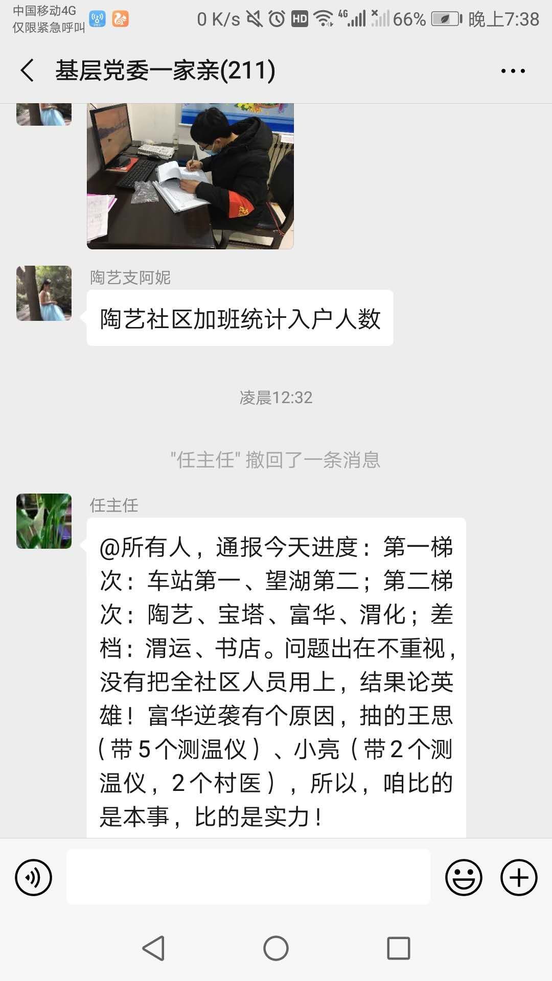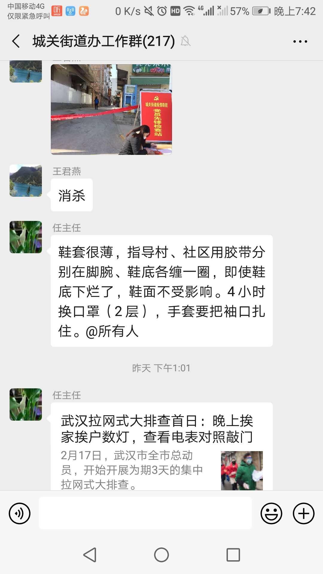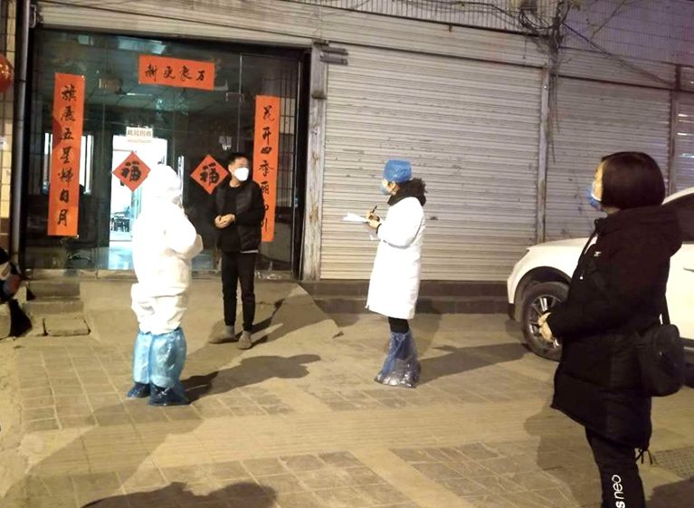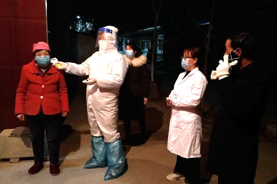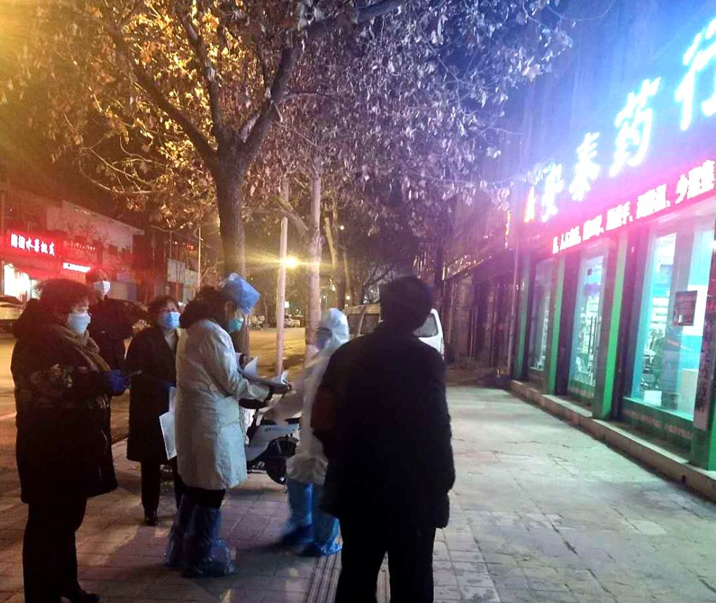 晚上:全民测体温“夜访大行动” 城关街道办位于城郊结合部、村居混杂,老旧小区多、外来流动人口多、租房户多。很多租房和买房的居民春节都回老家了,有些一栋楼只有一两户人家,前期白天去排查,大部分都是无效劳动,疫情排查的队员很辛苦,但排查的效果并不好。 在白天辖区开展的“全民测体温”、 “大排查”活动的基础上,2月18晚,启动了全民测体温“夜访行动”,对20:00 ---24:00的亮灯户,通过采取电话、微信或上门等方式进行体温测量登记,对拒不配合人员,公安机关将依法采取措施。 窦村工作人员刘磊说到,“夜访行动可以针对居民亮灯的家庭去排查,仅用 1小时就可以完成白天需要半天时间才能完成的任务,取得了事半功倍的效果。” “我们的工作队员,给居民测温的人还穿了防护服,大大消除了居民对入户测温排查的担忧。” 望湖社区书记高润绳说到,“通过夜访行动,排查出了一些原来电话无人接听、敲门无回音的漏排户,很好解决了测温漏户漏人的问题。” 24小时:体温检测技术指导 街办领导在不断巡查的基础上,时刻关注城关街道党委群、工作群,对测体温存在的问题及时纠正,要求戴一次性工作帽、一次性鞋套、一次性医用防护口罩、一次性乳胶手套,配备护目镜,随身携带快速手消毒剂,口罩每4小时更换一次,每接触一位居民(村民)前后应使用快速手消毒剂进行手部消毒。 红外线体温计测量做到:开机后将红外探测器部分指向前额头正中央—眉心上方并保持垂直,测量部位不能由毛发遮挡,如有汗水应擦干,与额头的距离建议在3-5cm左右。屏幕显示体温示数,记录数值,测温结束。